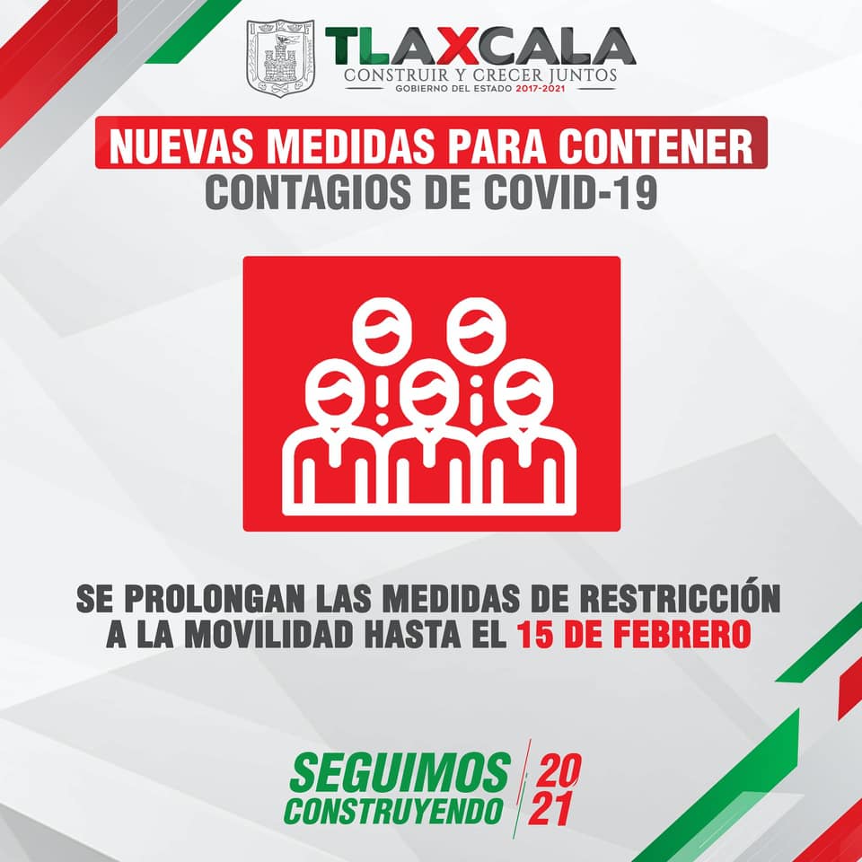 El alcalde del municipio de Cuapiaxtla ubicado en la zona oriente del Estado informó a través de las redes sociales del municipio que se acataran a las medidas impuestas por el gobierno estatal para contener los contagios por Covid- 19 que serán implementadas hasta el día 15 de febrero, entre las cuales está por supuesto la suspensión de carnavales y fiestas patronales en todos los municipios, el cierre de establecimientos de hospedaje como son hoteles y moteles, ley seca los días 12, 13, y 14 de febrero, entre otras.
