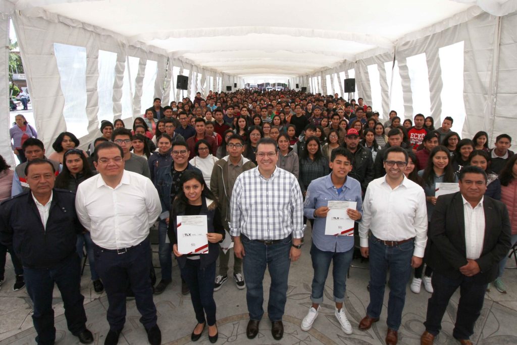 Durante la entrega de becas a 359 mujeres y 175 hombres de Ixtenco, Cuapiaxtla y Huamantla, Marco Mena invitó a los alumnos beneficiados a esmerarse en sus estudios para que sean motivo de orgullo de sus familias y la sociedad, al tiempo de resaltar que el Sistema Estatal de Becas se combina con los incentivos que otorga el Gobierno Federal, lo que amplía las posibilidades para que continúen su formación académica.