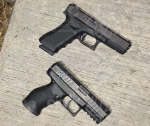 Al realizarles una inspección preventiva se encontró entre sus pertenencias dos armas de fuego calibre 9 mm, con dos cargadores abastecidos con 15 y 4 cartuchos útiles del mismo calibre.