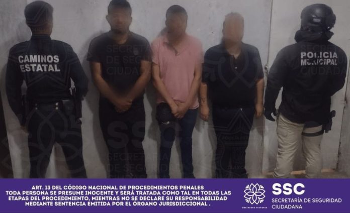Tlaxcala, Tlax.- Mediante la coordinación entre la Secretaría de seguridad Ciudadana y la Dirección de Seguridad Pública del municipio de Tepetitla, se aseguró a tres personas, dos del sexo masculino y una del sexo femenino, por su presunta responsabilidad de la portación de armas de fuego y encubrimiento por receptación de una unidad vehicular con reporte de robo.