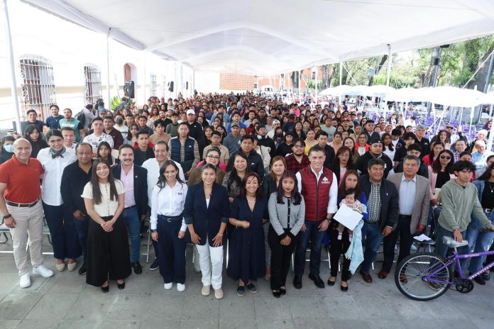 La gobernadora Lorena Cuéllar Cisneros entregó apoyos del Programa “Herramientas para tu Futuro” 2026, en su tercera edición, a 360 jóvenes de los 60 municipios de Tlaxcala, con el objetivo de fortalecer su desarrollo laboral, aumentar sus ingresos, promover el autoempleo y su movilidad.