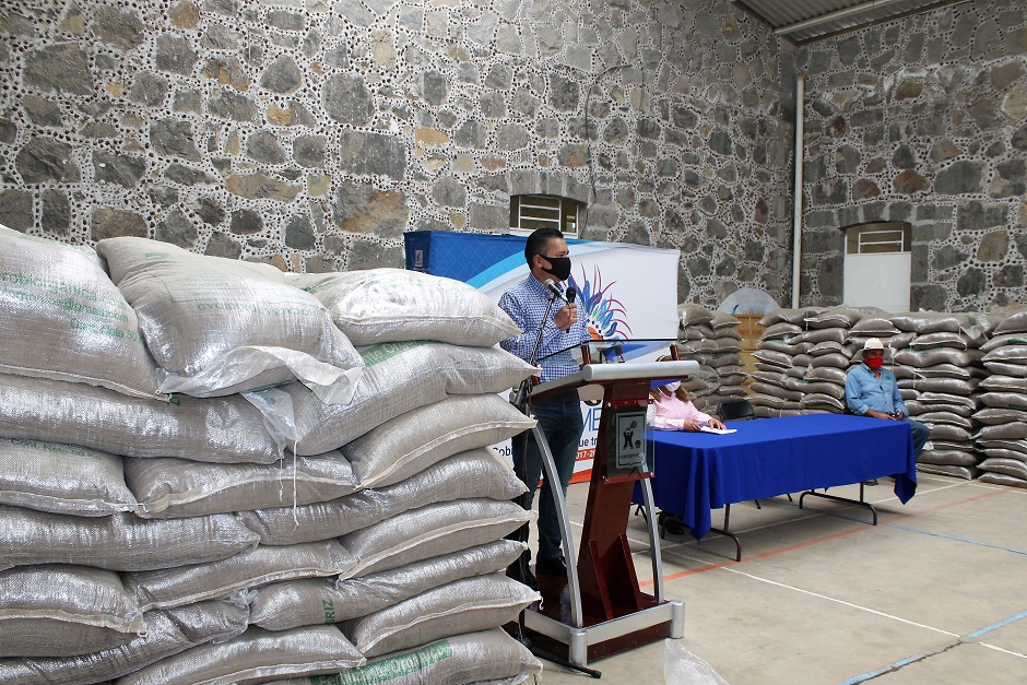 El evento se realizó en la Casa de Piedra bajo un estricto protocolo de salud e higiene, además de guardar la sana distancia entre las personas beneficiadas, toda vez que este tipo de apoyos deben ser entregados en tiempo y forma debido al ciclo agrícola y preparación del campo.
