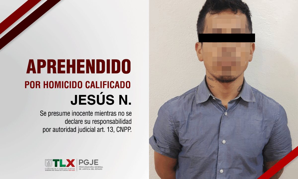 Tlaxcala, Tlax.-La Procuraduría General de Justicia del Estado (PGJE) esclareció el homicidio de un comerciante de tacos en el municipio de Calpulalpan, con la captura de Jesús N., probable autor material e intelectual del hecho; enfrentará su proceso penal en prisión preventiva oficiosa.