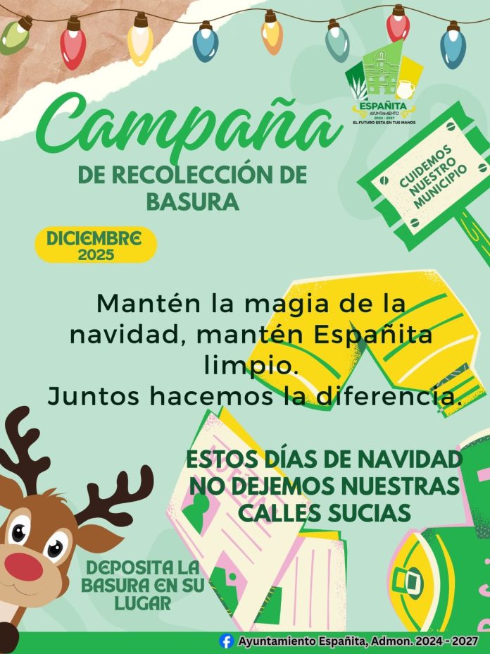 Españita da inicio a las celebraciones decembrinas con Campaña de recolección de basura