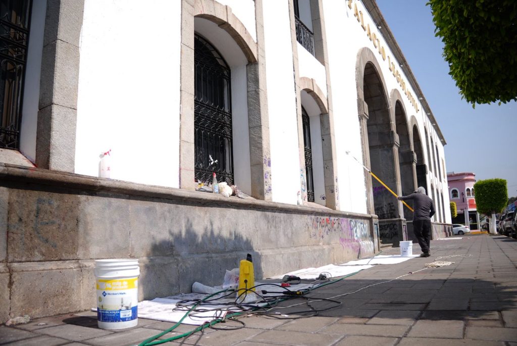 Durante la revisión se identificaron diversas pintas con aerosol en la fachada, recepción, aceras y laterales del edificio, así como daños en vidrios de oficinas y salones ubicados en la parte frontal del recinto legislativo. Personal del Congreso del Estado inició labores de limpieza y restauración de las áreas afectadas, con el objetivo de recuperar las condiciones del inmueble sin que ello afecte el desarrollo de las actividades institucionales.