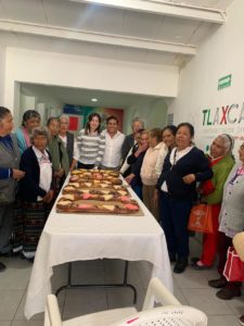 Tequexquitla,Tlax.-Óscar Vélez Sánchez Presidente Municipal de Tequexquitla y Diana Vázquez Urbina, Presidenta del DIF Municipal, compartieron la tradicional rosca de Reyes con los adultos mayores en el Comedor Comunitario.