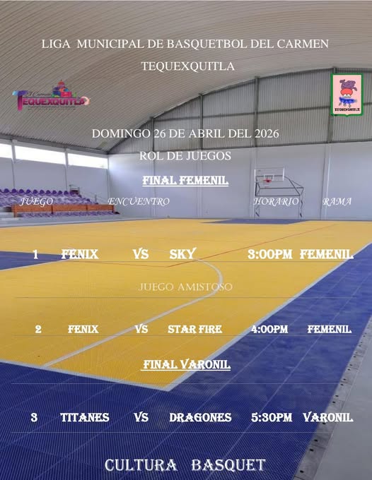 Tequexquitla, Tlax. – El municipio de El Carmen Tequexquitla se prepara para vivir una de las jornadas deportivas más esperadas con la gran final de la Liga Municipal de Basquetbol, un evento que promete grandes emociones además de reunir a jugadores y aficionados del deporte ráfaga.