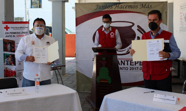 Tzompantepec, Tlaxcala.-El presidente municipal de Tzompantepec Arturo Rivera Mora en compañía del Mtro. Miguel García Méndez Salazar quien se encontraba en representación de la presidenta del consejo estatal de Cruz Roja Mexicana I.A.P. Tlaxcala, Silvia Elena Rodríguez Guajardo; llevaron a cabo la firma del convenio de colaboración entre el Ayuntamiento de Tzompantepec y la Cruz Roja Mexicana I.A.P Tlaxcala, mismo convenio refiere la intervención de la institución de salud para atender traslados programados con carácter pre-hospitalario, con esto se pretende facilitar el traslado de pacientes que los requieran hacia su lugar de de destino.