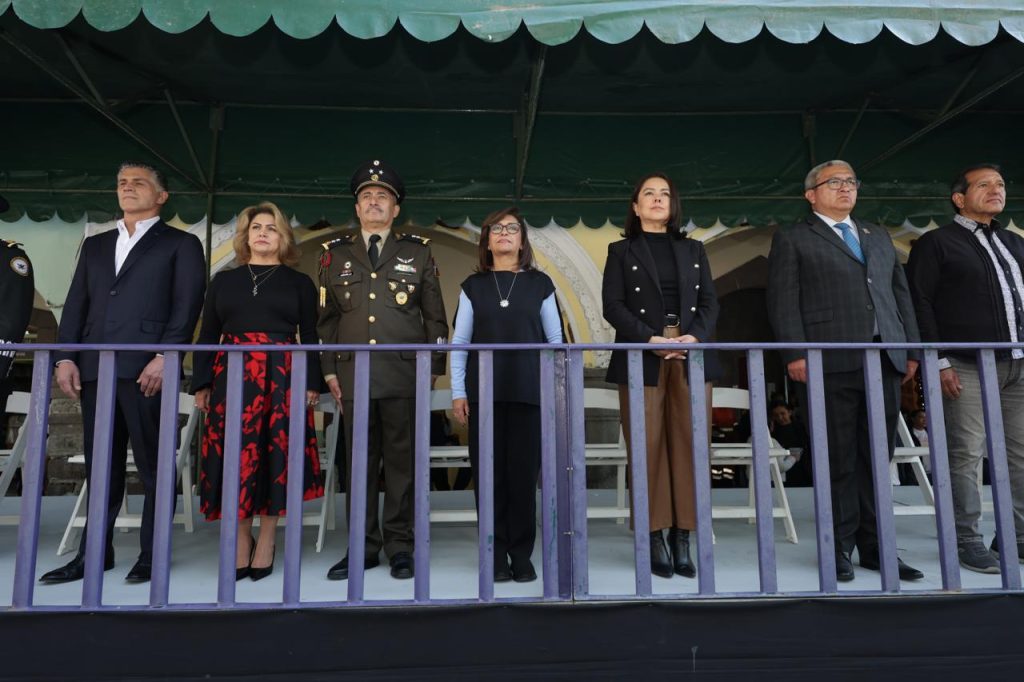 Estuvieron presentes la diputada Maribel León Cruz, presidenta de la Mesa Directiva del Congreso del Estado; la magistrada Fanny Margarita Amador Montes, presidenta del Tribunal Superior de Justicia del Estado; el general Martín Jaramillo Barrios, comandante de la 23 Zona Militar; el general Raúl Martínez González, coordinador estatal de la Guardia Nacional; Alfonso Sánchez García, presidente municipal de Tlaxcala, y funcionarios estatales y del sector educativo.