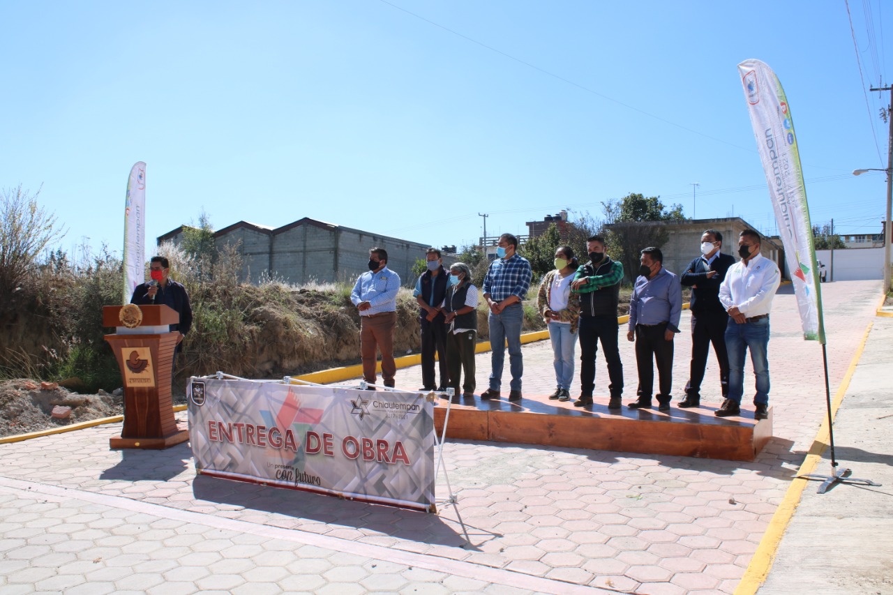 Tlaxcala, Tlax.-El día de hoy el Presidente Municipal de Chiautempan Héctor Domínguez Rugerio y el Secretario del Ayuntamiento Nicolás Gutiérrez De Casa hicieron entrega de más de 3 millones de pesos invertidos en obras públicas para la Colonia el Alto.