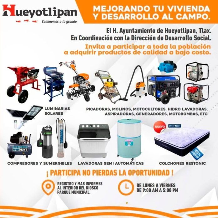 A través del Área de Desarrollo Social, dirigida por Ricardo Hernández Morales, se abrió la convocatoria para que la ciudadanía pueda acceder a productos de alta calidad a bajo costo, entre los que destacan herramientas y equipos para el campo, así como artículos domésticos que mejoran el bienestar de los hogares.