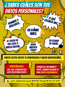 Para abundar sobre ésta y más información, el IAIP Tlaxcala pone a disposición del público el siguiente enlace electrónico https://micrositios.inai.org.mx/clic/, en donde el Instituto Nacional de Transparencia, Acceso a la Información y Protección de Datos Personales (INAI) abunda sobre buenas prácticas en mantera de privacidad en menores de edad.