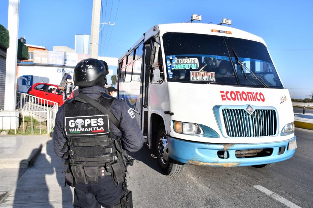 Como parte de los operativos de prevención y vigilancia que realiza la Dirección de Seguridad Pública, Tránsito y Protección Civil de Huamantla, se lleva a cabo en las entradas y salidas del municipio el operativo “Transporte Seguro”, que busca dar acompañamiento a usuarios y transportistas con revisiones a las unidades de transporte.