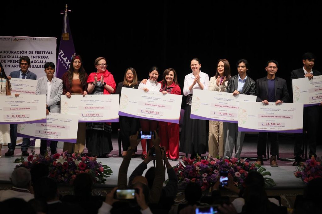 En el marco de la conmemoración de los 500 años de la fundación de Tlaxcala, la gobernadora Lorena Cuéllar Cisneros inauguró el primer Festival Tlaxkallan 2025, y entregó reconocimientos e incentivos económicos a los ganadores de la edición XXVI de los Premios Tlaxcala de Artes Visuales “Memorias de tiempos futuros”.