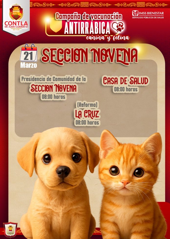 Contla de Juan Cuamatzi, Tlax. – Con el objetivo de prevenir enfermedades y promover la tenencia responsable de mascotas, autoridades de salud anunciaron la realización de la Campaña Nacional de Vacunación Antirrábica Canina y Felina en el municipio de Contla de Juan Cuamatzi.