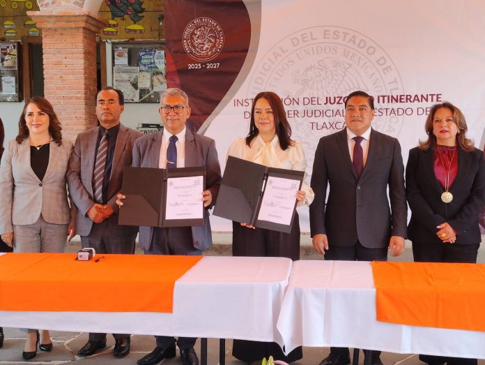 Hueyotlipan, Tlax. – Con el objetivo de acercar los servicios legales a la población, autoridades municipales de Hueyotlipan formalizaron la implementación de un Juzgado Itinerante, mediante la firma de un convenio con el Poder Judicial del Estado de Tlaxcala.