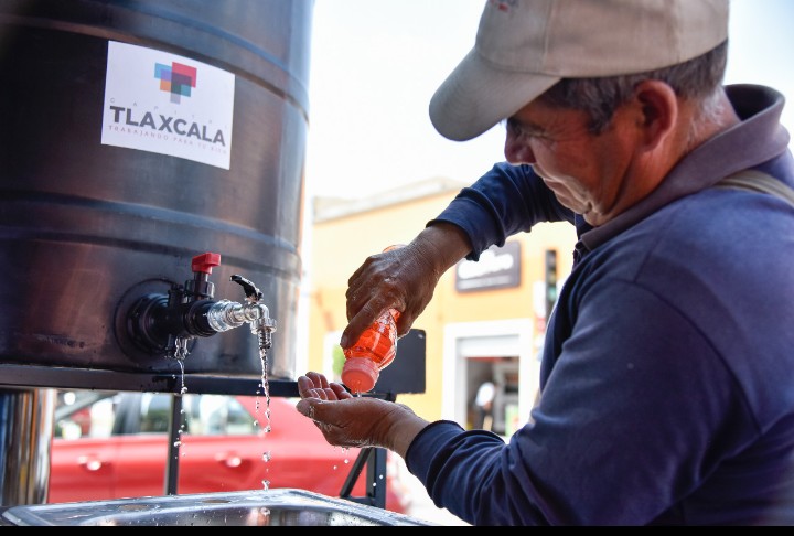 Tlaxcala,Tlax.-El ayuntamiento de Tlaxcala a través de la Dirección de Servicios Públicos Municipales, comenzó este día con la instalación de tinacos de agua en lugares estratégicos de la ciudad como la explanada posterior de San José, en mercados y los lugares con mayor afluencia de ciudadanos, con la finalidad de brindar a la población la oportunidad de lavarse de forma continua sus manos en la vía pública.