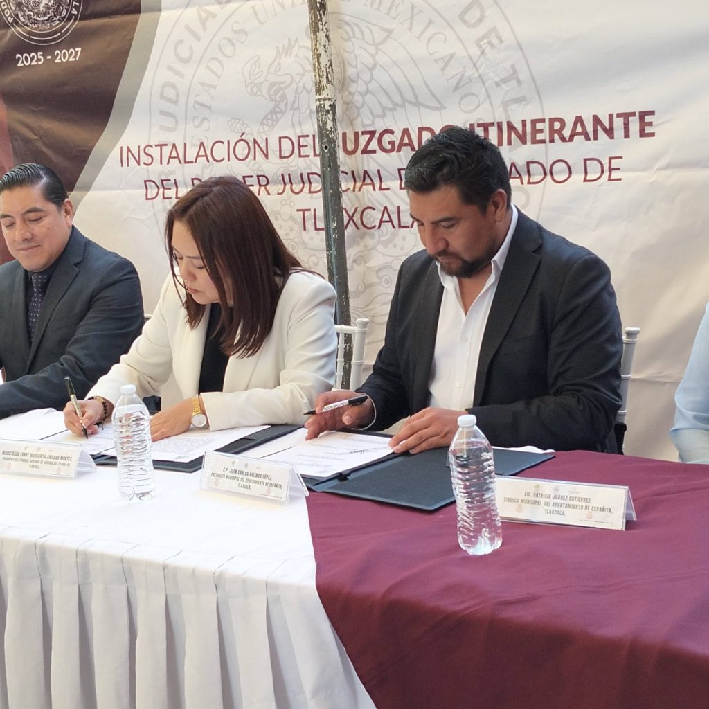 Españita, Tlax. – Con el objetivo de facilitar el acceso a la justicia en el municipio, el Ayuntamiento de Españita informó que se concretó la firma de colaboración para la instalación de un Juzgado Itinerante de Primera Instancia en Materia Civil y Familiar, el cual comenzó operaciones el pasado 18 de marzo de 2026.