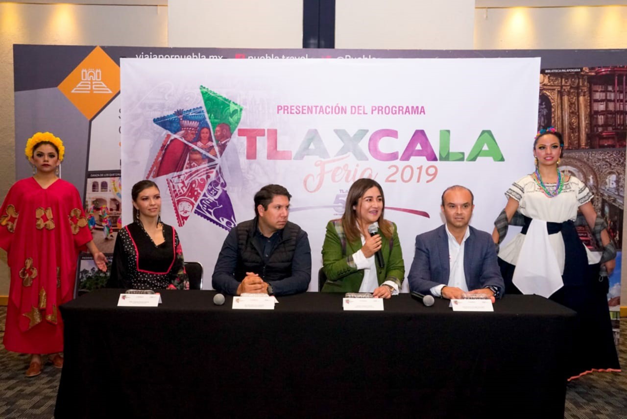 Tlaxcala, Tlax.- Como parte de la estrategia de promoción que desarrolla el Gobierno del Estado para difundir los atractivos de la entidad, la Secretaria de Turismo, Anabel Alvarado Varela, y el Presidente del Patronato de Feria, José Antonio Carvajal Sampedro, presentaron en la ciudad de Puebla las actividades de “Tlaxcala Feria 2019”.
