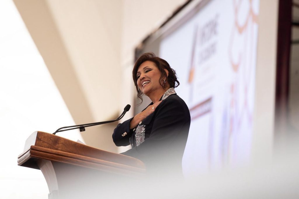 “Y lo digo con orgullo: lo que aquí hemos logrado honra la visión de nuestro ex presidente Andrés Manuel López Obrador, y camina de la mano con el proyecto humanista y visionario que encabeza nuestra presidenta Claudia Sheinbaum Pardo”, dijo, acompañada por integrantes del gabinete legal y ampliado.