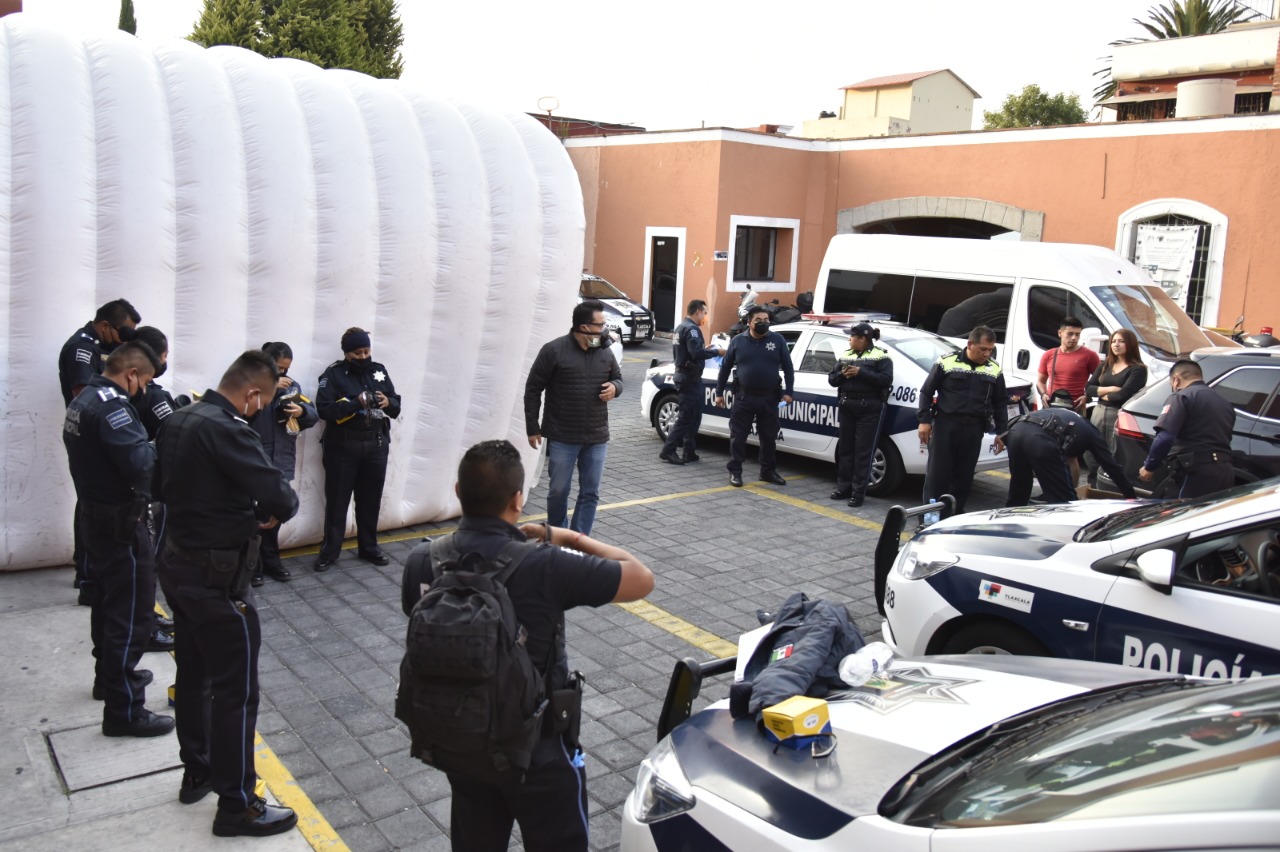 En cuanto a las medidas en las oficinas de la Dirección de Seguridad, se instaló un túnel sanitizador en el acceso principal, para inhibir cualquier tipo de contagio en los elementos; se acordó evitar la formación durante el cambio de turno; se omitirá que oficiales chequen en el reloj para evitar todo tipo de contacto y solo se llevarán bitácoras.