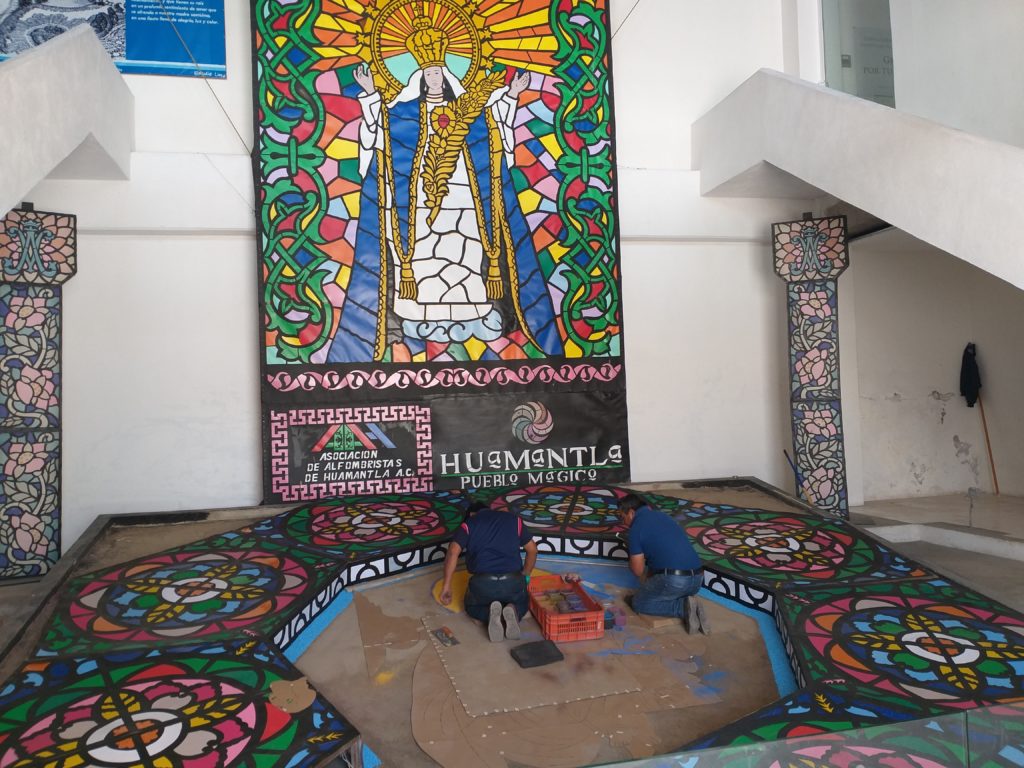 Por otro lado, en el museo destinado a la Santa Patrona de los Huamantlecos, Integrantes de la Comisión de Alfombristas, a cargo de Tapetes Servín, comenzaron a confeccionar pre-alfombra de estos festejos, la cual le da realce a este lugar y en la que está inmersa la imagen de la Santísima Virgen María, en su advocación de María Auxiliadora.