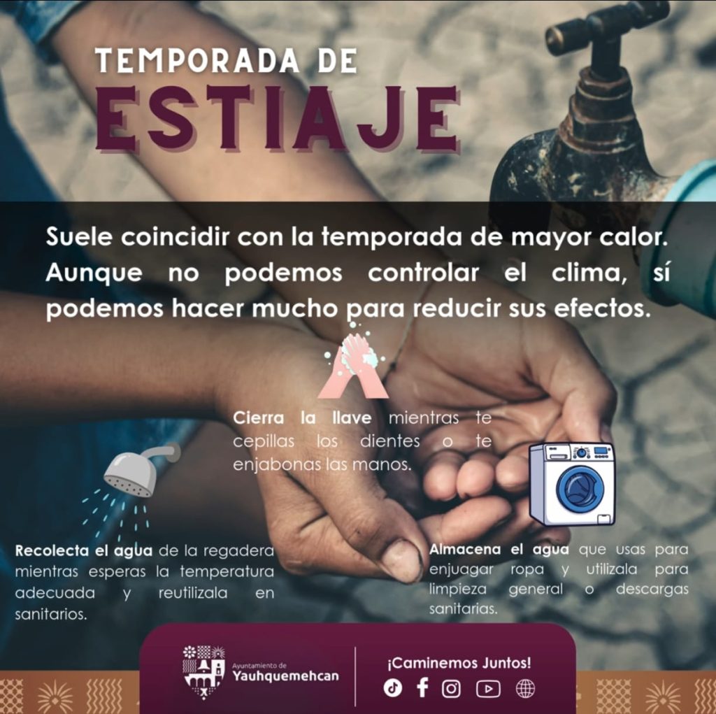 El Presidente Municipal de Yauhquemehcan David Vega Terrazas, exhortó a la ciudadanía a usar responsablemente el vital liquido durante la temporada de estiaje, “Estamos implementando una campaña en redes sociales con infografías que contienen recomendaciones sobre el uso responsable del agua, en esta temporada de estiaje, pues es tarea de todos apoyar con grandes y pequeñas acciones”.