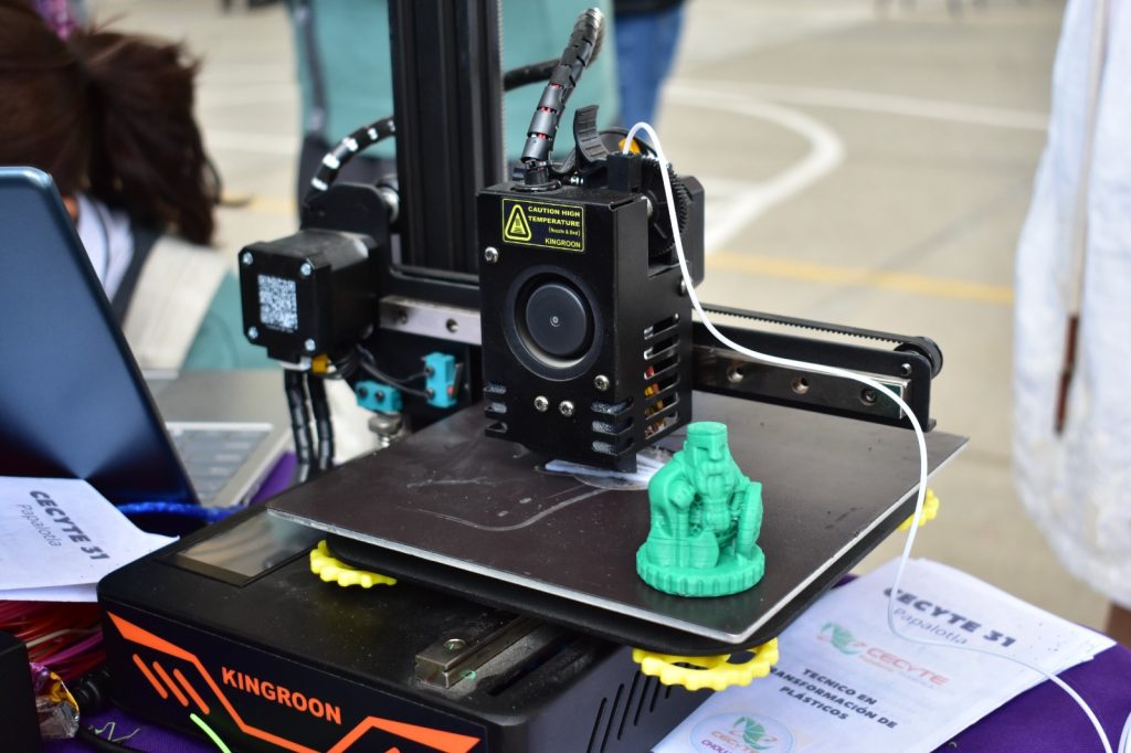 Los futuros técnicos del plantel Papalotla desarrollaron proyectos de termo formado para manipular plástico en filamentos, a fin de moldear figuras de ornato en pequeña escala, con material reciclado. Asimismo, se realizó una demostración de proyectos en impresión 3D.