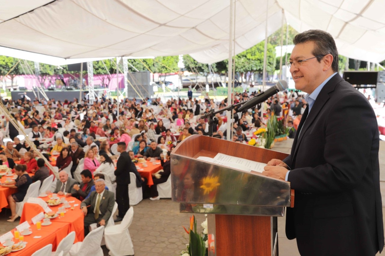 Acompañado por Alfonso Cepeda Salas, Secretario General del SNTE, el Gobernador Mena reconoció el esfuerzo que realizaron los maestros jubilados durante su vida profesional al servicio de los estudiantes tlaxcaltecas.