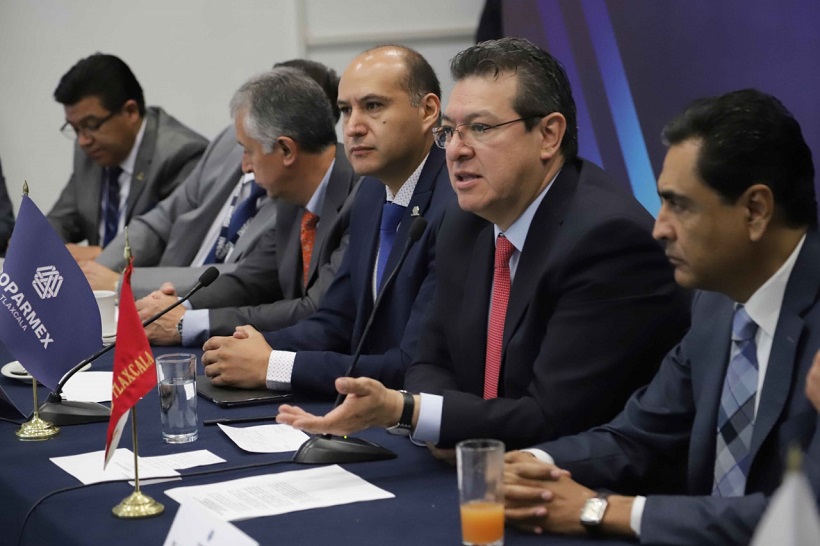 Tlaxcala, Tlax.- El Gobernador Marco Mena destacó la tendencia positiva que registra el estado en los últimos dos años en materia de crecimiento económico, generación de empleo formal, seguridad y reducción de la pobreza extrema, al participar en el encuentro “Diálogos por Tlaxcala” que organiza la Confederación Patronal de la República Mexicana (Coparmex) en la entidad.