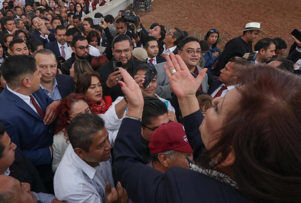 A las 12:30 horas, la llegada de la gobernadora encendió los ánimos: estallaron las porras, los aplausos y los gritos de “¡Así se gobierna!”, “¡Lorena es un honor estar con usted!”, “Lorena, Lorena, ra ra”.