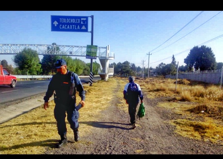 Cuando a la altura de San Luis Teolocholco efectivos adscritos a la Dirección de Seguridad Pública Municipal (DSPM) y sus pares de la Secretaría de Seguridad Ciudadana (SSC), observaron que en la cuneta lateral de la cinta asfáltica estaba el mencionado envoltorio.