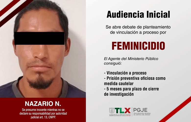 La correcta exposición de datos de prueba por parte del Agente del Ministerio Público adscrito a la Procuraduría General de Justicia del Estado (PGJE), permitió la vinculación a proceso de Nazario N., por el delito de feminicidio ocurrido en el municipio de San Pablo del Monte.
