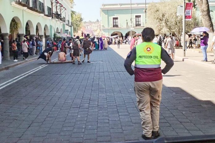 Como parte del operativo implementado por la temporada de Semana Santa, Policía Municipal, en coordinación con personal de Protección Civil del municipio de Tlaxcala, mantienen presencia activa este Viernes Santo en distintos puntos de la capital.