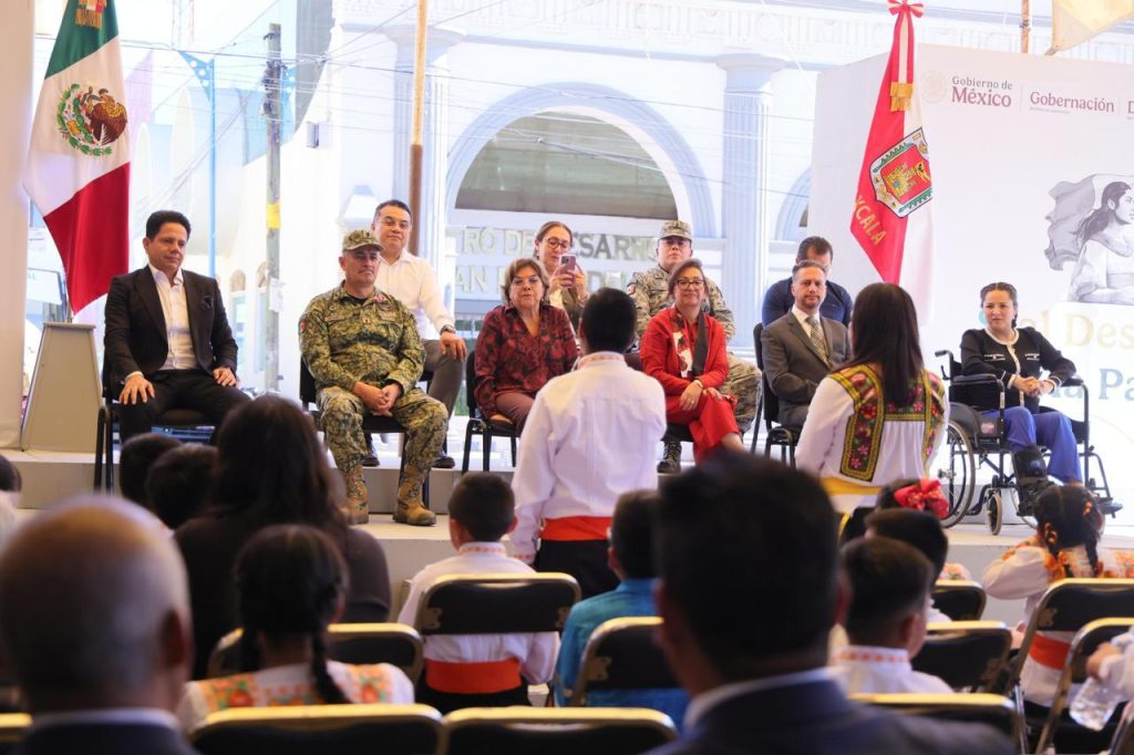 Además, para promover la paz desde las infancias, niñas y niños podrán entregar juguetes bélicos a cambio de juguetes interactivos o recreativos, donados por los sistemas Nacional y Estatal para el Desarrollo Integral de la Familia (DIF). Por ello, la funcionaria federal celebró la asistencia de alumnas y alumnos de la escuela Xicohténcatl de Apizaco en el arranque de la jornada.