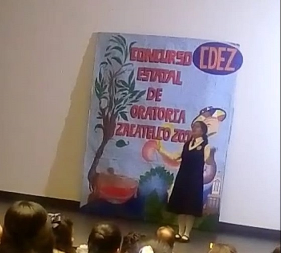 Huamantla, Tlax.- El primer lugar del Concurso Estatal de Oratoria de nivel preparatoria de escuelas particulares, fue para Blanca Daniela Crisóstomo Sánchez, estudiante originaria de la ciudad de Huamantla, quien además obtuvo su tercer triunfo consecutivo.