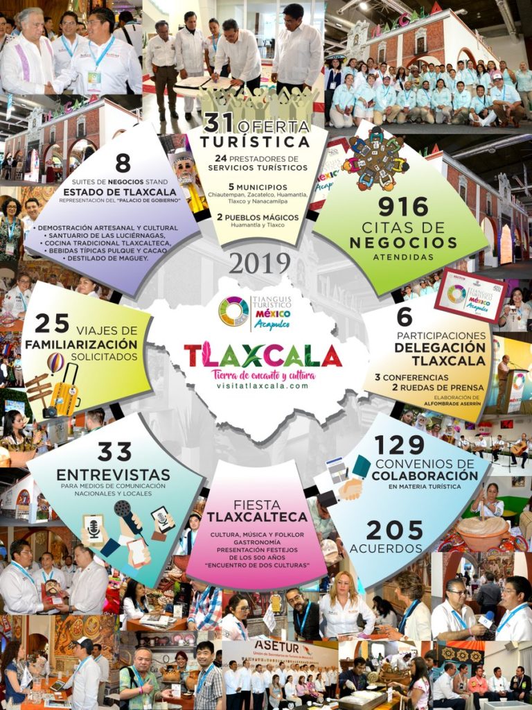 Tlaxcala, Tlax.- La Secretaría de Turismo (Secture) presentó los resultados de la participación de Tlaxcala en el Tianguis Turístico 2019 que se celebró en Acapulco, encuentro donde la dependencia atendió 916 citas de negocios y la solicitud de 25 viajes de familiarización, signó 129 convenios de colaboración y estableció 205 acuerdos en materia turística, con la finalidad de consolidar al estado como un destino de la zona centro del país.