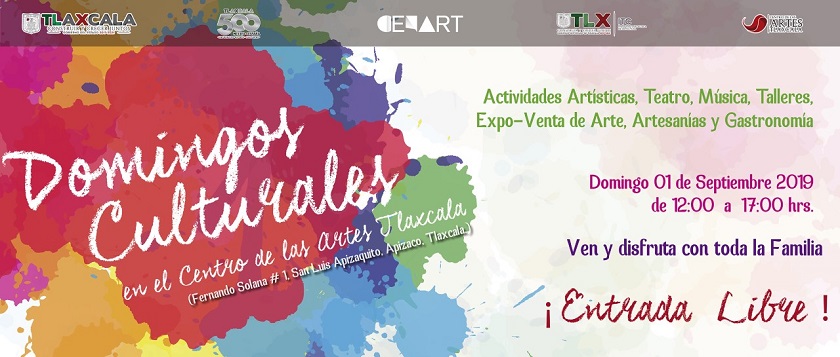 Tlaxcala, Tlax.- El Instituto Tlaxcalteca de la Cultura (ITC) invita al público en general a participar en los “Domingos Culturales” que se realizarán en el Centro de las Artes con la finalidad de promover el trabajo artístico de creadores locales, e impulsar la comercialización de artesanías hechas en la entidad.