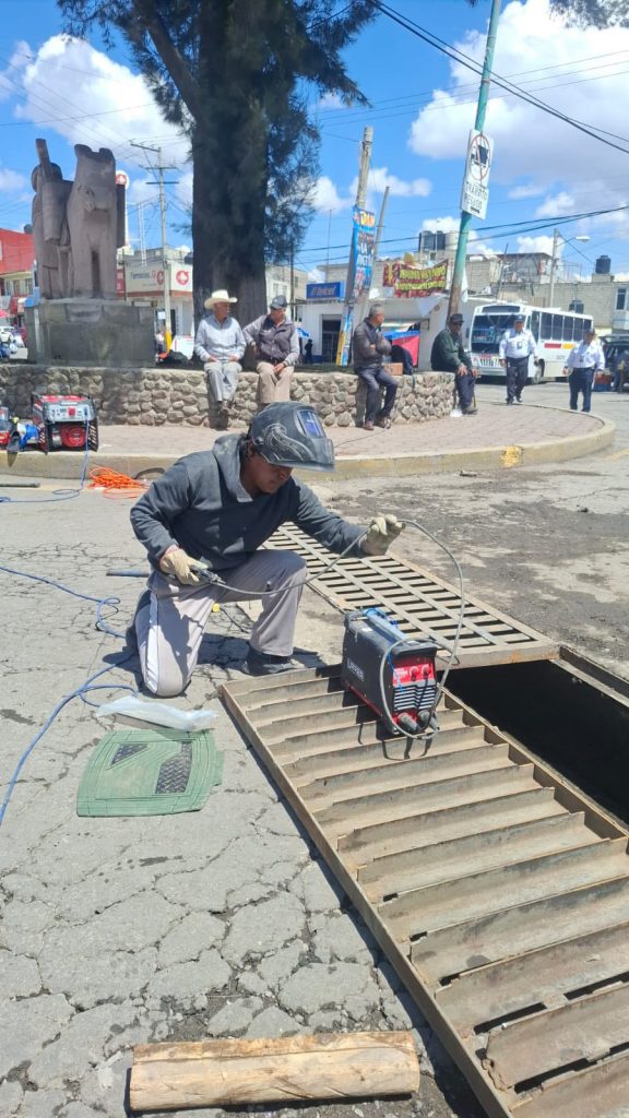 Los trabajos incluyen el corte de estructuras, la extracción de residuos sólidos acumulados, así como la reinstalación y soldadura de las rejillas, con el fin de asegurar su correcto funcionamiento y evitar obstrucciones.