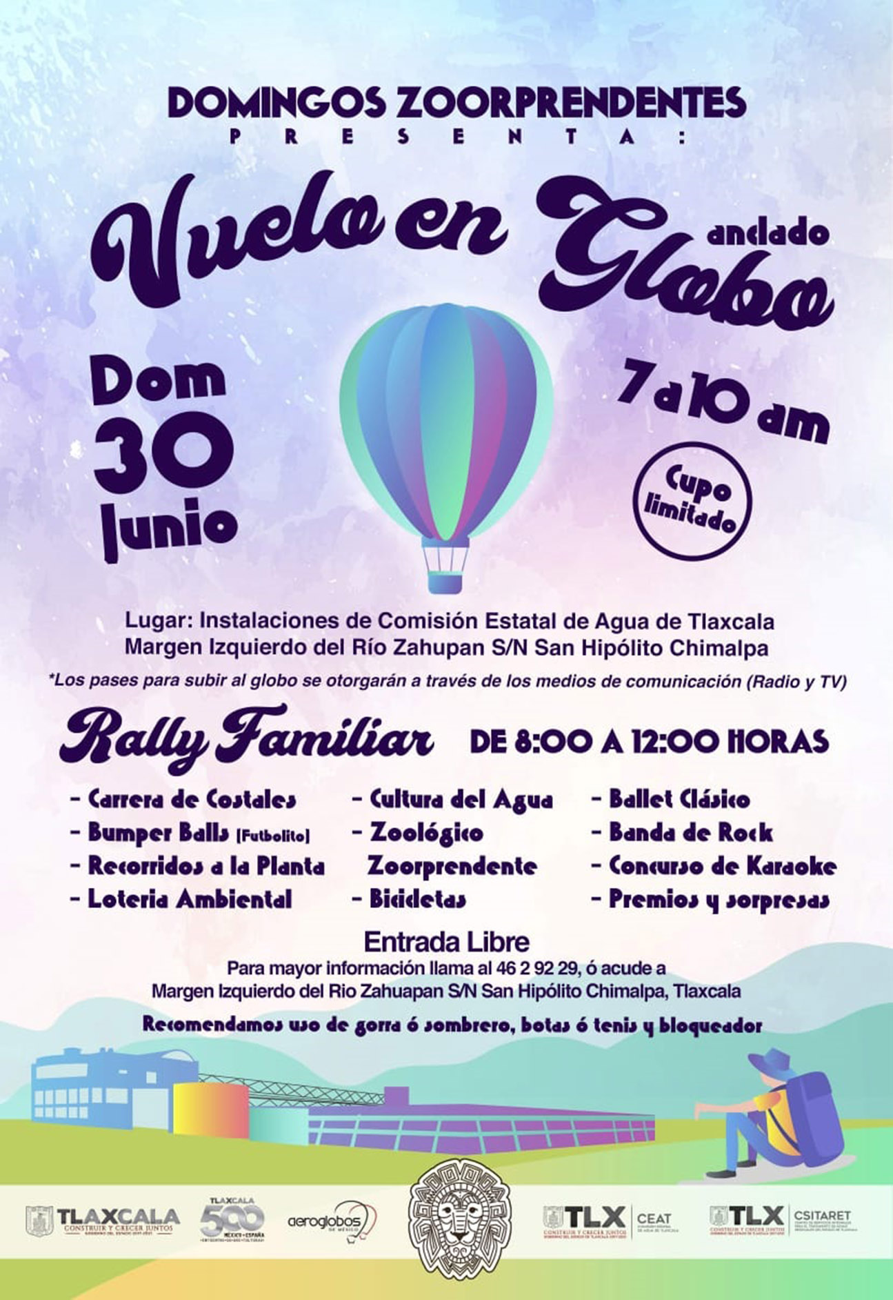 La estrategia contempla actividades recreativas, deportivas y educativas gratuitas como vuelos en globo aerostático anclado y un rally familiar que se realizarán el domingo 30 de junio en la planta de tratamiento de San Hipólito Chimalpa.