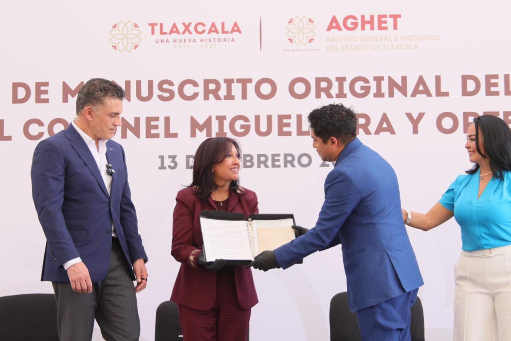 El Gobierno del Estado de Tlaxcala recibió en donación el manuscrito original del siglo XIX del coronel Miguel Lira y Ortega, documento de alto valor histórico que pasa a resguardo del Archivo General e Histórico del Estado. El acto fue encabezado por la gobernadora Lorena Cuéllar Cisneros, quien reconoció el gesto del donante como una contribución invaluable a la memoria colectiva de la entidad.