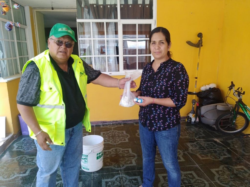 Flores Hernández detalló que brigadas de la dependencia visitaron diversas casas ubicadas en la comunidad de Ocotlán, donde difundieron recomendaciones y entregaron los frascos de plata coloidal para la desinfección de agua, frutas y verduras, así como las pastillas de hipoclorito de calcio con el objetivo de garantizar la higiene del agua almacenada en tinacos y cisternas.
