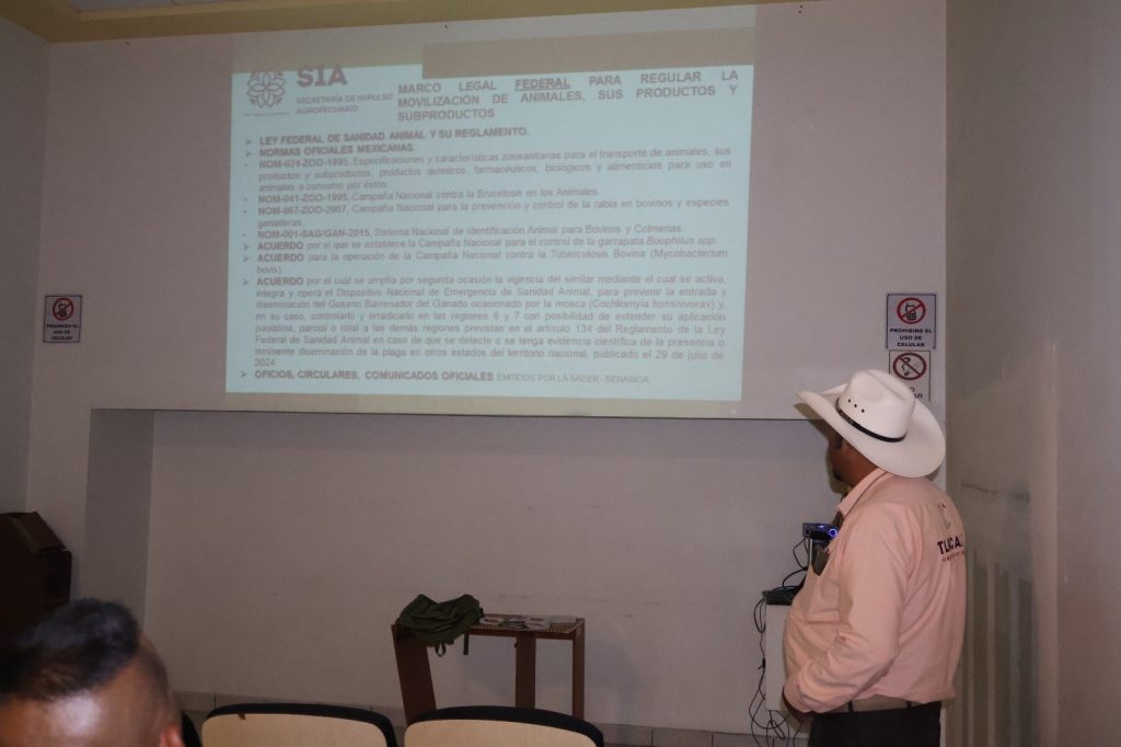 Durante la actividad se contó con la participación del médico veterinario Claudio Colorado Ramírez, inspector y verificador sanitario estatal, quien ofreció una ponencia sobre el gusano barrenador, abordando su situación actual tanto a nivel estatal como nacional, así como las medidas necesarias para su prevención y control.