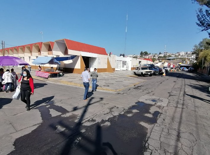 Tlaxcala,Tlax.-Por segundo fin de semana consecutivo, el ayuntamiento de Tlaxcala y el gobierno del Estado, implementaron las medidas de prevención para hacer frente a la pandemia por el Covid-19 en el tianguis sabatino con la entrega de cubrebocas, gel, caretas a tianguistas, así como toma de temperatura.