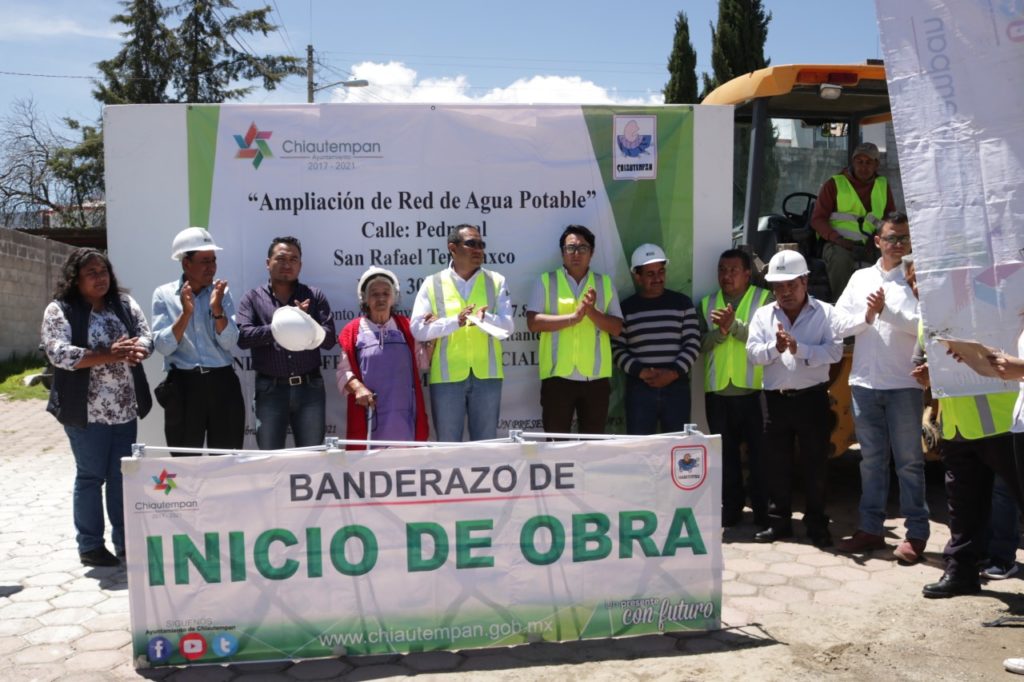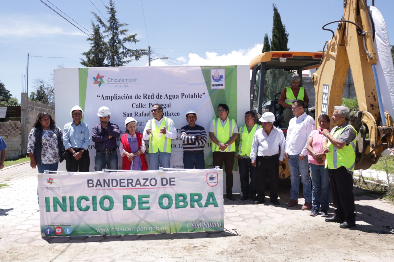 Chiautempan, Tlax.- Este jueves, el Licenciado Héctor Domínguez Rugerio, en compañía del Secretario de Ayuntamiento Nicolás Gutiérrez De Casa, así como el Presidente de la Comunidad de Tepatlaxco y algunos Regidores, dio el banderazo de inicio de obras para la rehabilitación de la red de Agua Potable en la Calle el Pedregal de la Comunidad de San Rafael Tepatlaxco.