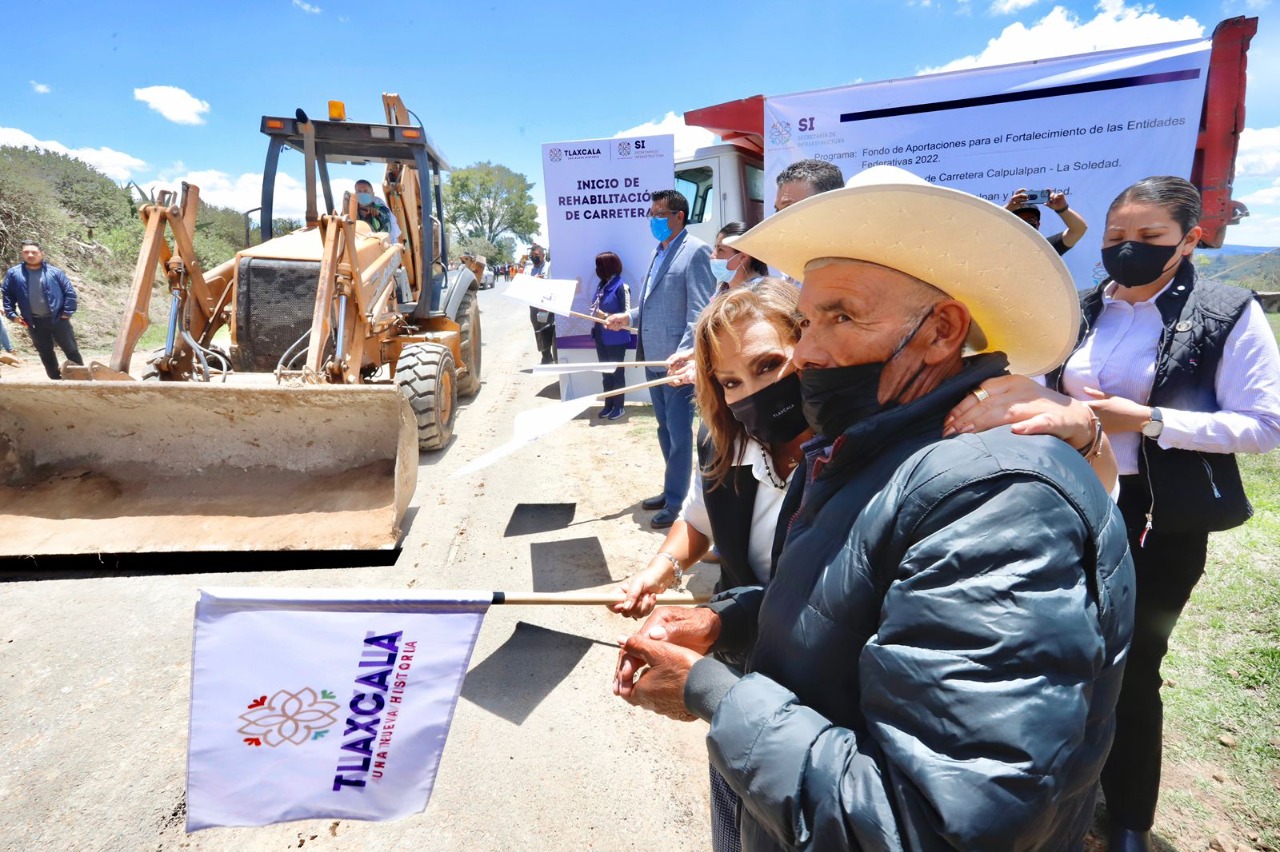Tlaxcala,Tlax-La gobernadora Lorena Cuéllar Cisneros dio el banderazo de inicio a tres obras de rehabilitación carretera en los municipios de Calpulalpan y Españita, donde invertirá 39 millones 969 mil 259 pesos del Fondo de Aportaciones para el Fortalecimiento de las Entidades Federativas 2022, en beneficio de más de 45 mil habitantes de la zona poniente del estado.