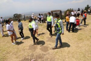 Durante los recorridos se verificaron accesos y salidas, además que no se registrara acumulación de personas, el cuidado de las medidas sanitarias y se hicieron recomendaciones a las personas sobre su salud, como el uso del cubrebocas, aplicación de gel y toma de temperatura, así como el cuidado ante los rayos del sol y el respeto a las indicaciones para caminar por las zonas arqueológicas.