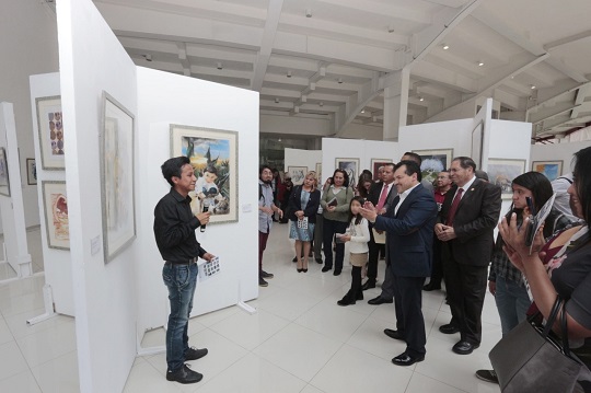 Tlaxcala, Tlax.- Con el propósito de acercar las diversas manifestaciones de las bellas artes a la ciudadanía en general, la Universidad Autónoma de Tlaxcala, (UATx), a través de la Secretaria de Extensión Universitaria y Difusión Cultural de manera conjunta con la Sociedad Cooperativa de Trabajadores de Pascual S.C.L, llevaron a cabo la apertura de la exposición pictórica colectiva “ReciclArte de Pascual”, integrada por 150 obras que han sido donadas por artistas de diversas instituciones educativas, así como del Salón de la Plástica Mexicana, la cual se exhibe en el vestíbulo del Centro Cultural Universitario hasta el 11 de julio.