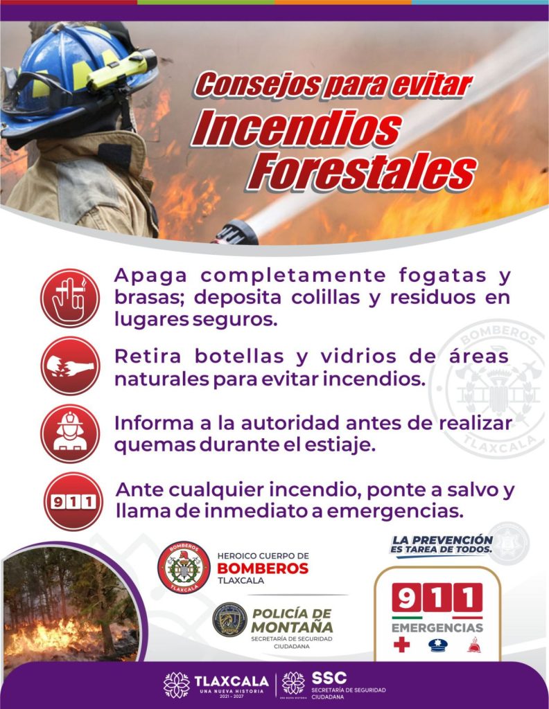 Con el propósito de proteger la vida y el patrimonio de las y los tlaxcaltecas, así como de preservar los recursos naturales del estado, el H. Cuerpo de Bomberos de la Secretaría de Seguridad Ciudadana (SSC) emite una serie de recomendaciones para la prevención de incendios, los cuales suelen incrementarse durante la temporada de estiaje y las altas temperaturas.