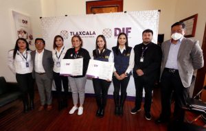La firma de convenio fue encabezada por la presidenta honorífica y la directora general del Sistema Estatal DIF, Mariana Espinosa de los Monteros Cuéllar y Flor López Hinojosa, respectivamente, así como por la directora del ITEA, Michaelle Brito Vázquez; también estuvieron presentes la coordinadora de la Zona 05, Ana Claudia Ramos González y el responsable de Alianzas Estratégicas del ITEA, Orlando Nava Cabrera.